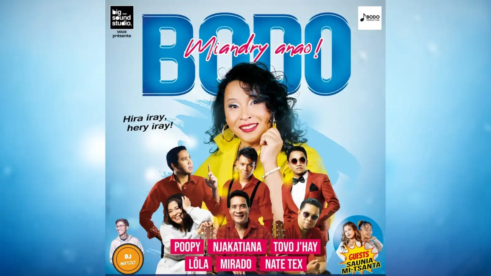 BODO – Grand Concert “MIANDRY ANAO” Après plusieurs années d’absence sur les grandes scènes, la diva Bodo revient en force pour un concert exceptionnel au Palais des Sports. Avec sa voix unique, elle signe un retour très attendu par le public malgache.